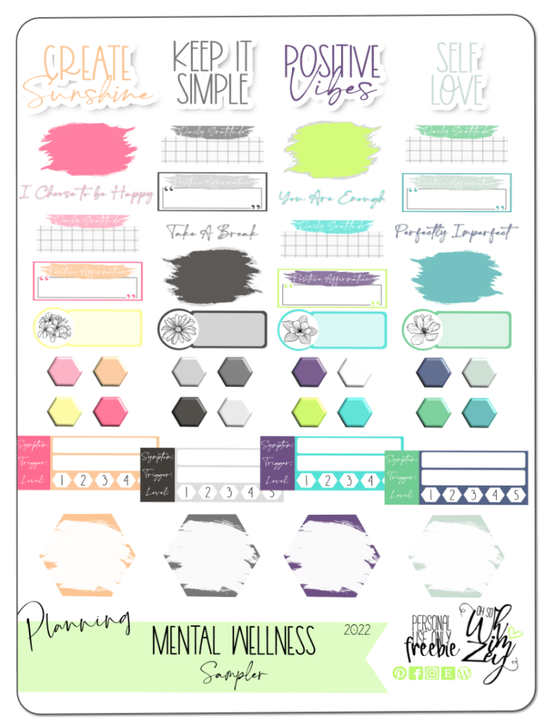 Mental Wellness Sampler | Digital Planning Freebie What You Get: Goodnotes File Individual PNGs Full Sheet PNG Get It Here